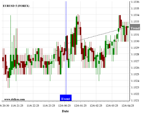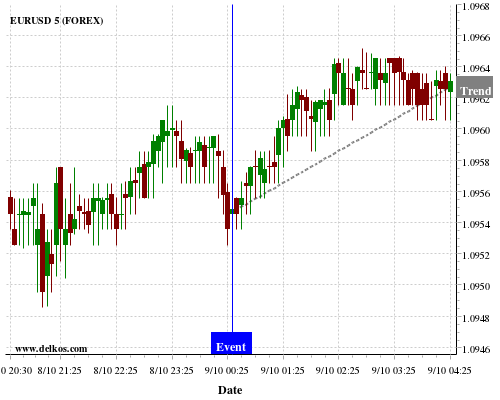 If the number is less than than economists’ consensus there is a 83.33% probability that EURUSD will trend up following the news event.