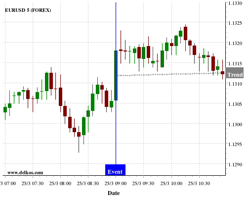 If the number is greater than than economists’ consensus there is a 83.33% probability that EURUSD will trend up following the news event.