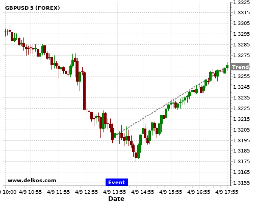 If the number is less than than economists’ consensus there is a 83.33% probability that GBPUSD will trend up following the news event.
