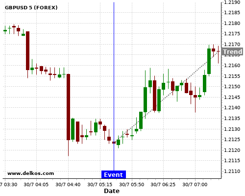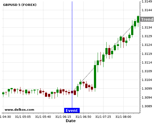 If the number is less than than economists’ consensus there is a 83.33% probability that GBPUSD will trend up following the news event.