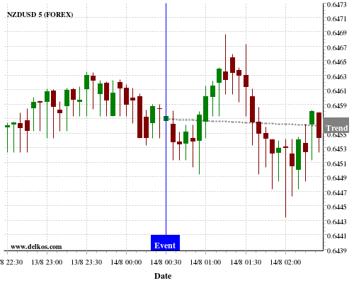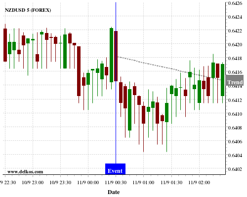 If the number is greater than than economists’ consensus there is a 83.33% probability that NZDUSD will trend down following the news event.