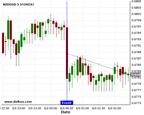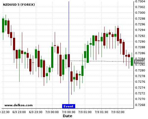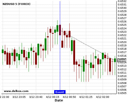 If the number is less than than economists’ consensus there is a 83.33% probability that NZDUSD will trend down following the news event.