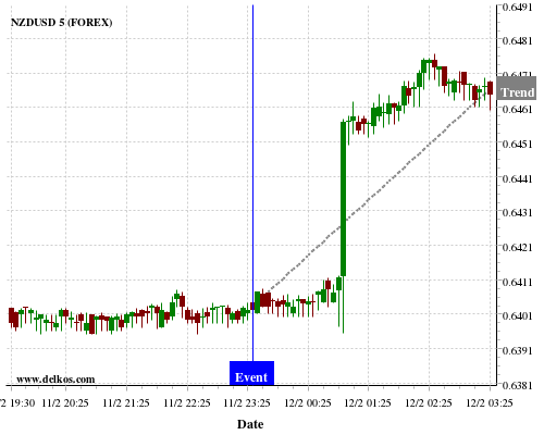 If the number is greater than than economists’ consensus there is a 83.33% probability that NZDUSD will trend up following the news event.