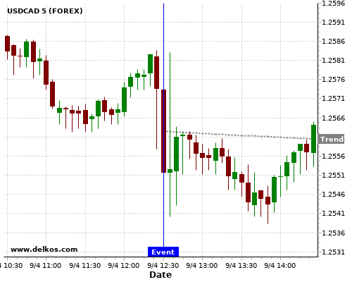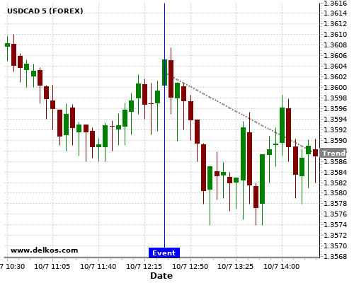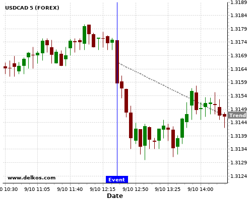 If the number is greater than than economists’ consensus there is a 83.33% probability that USDCAD will trend down following the news event.