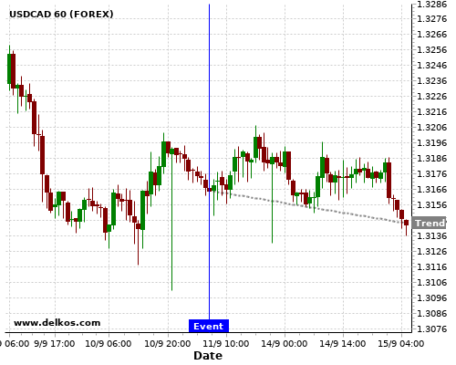 If the number is less than than economists’ consensus there is a 83.33% probability that USDCAD will trend down following the news event.