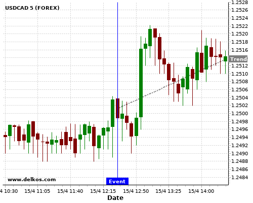 If the number is greater than than economists’ consensus there is a 83.33% probability that USDCAD will trend up following the news event.