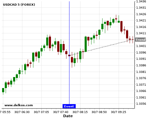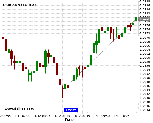 If the number is less than than economists’ consensus there is a 83.33% probability that USDCAD will trend up following the news event.