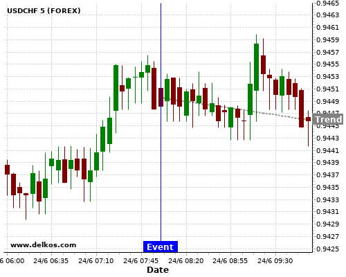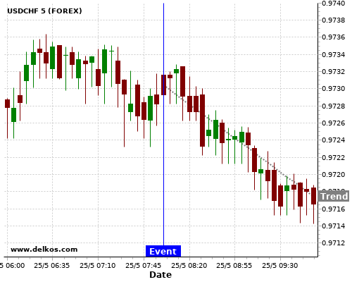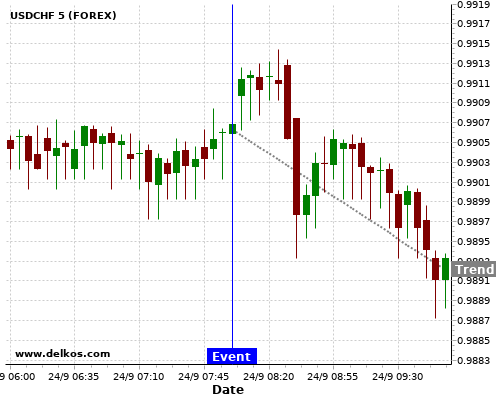 If the number is greater than than economists’ consensus there is a 83.33% probability that USDCHF will trend down following the news event.