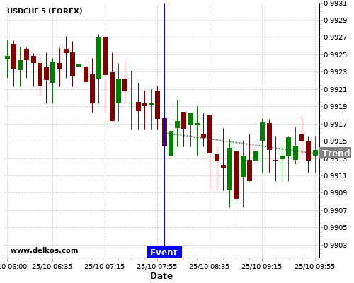 This probability is based on the last 12 DE Ifo Business Climate events, in which 5 of the last 6 events where the actual number was greater than than the economist consensus resulted in an down trend of USDCHF.