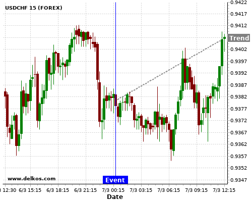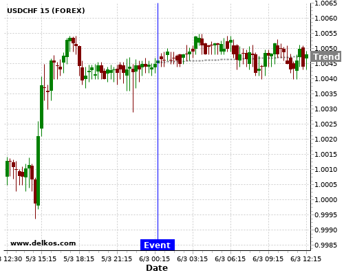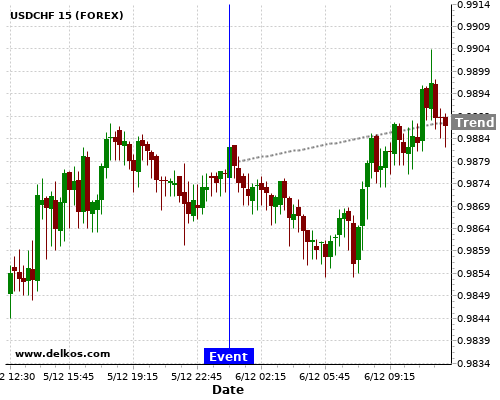 If the number is less than than economists’ consensus there is a 83.33% probability that USDCHF will trend up following the news event.