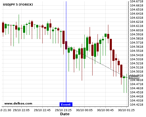 If the number is less than than economists’ consensus there is a 83.33% probability that USDJPY will trend down following the news event.