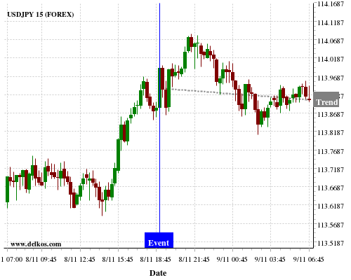 If the number is equal to than economists’ consensus there is a 83.33% probability that USDJPY will trend down following the news event.