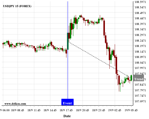 This probability is based on the last 12 US Fed Interest Rate Decision events, in which 10 of the last 12 events where the actual number was equal to than the economist consensus resulted in an down trend of USDJPY.