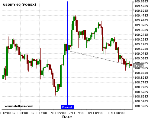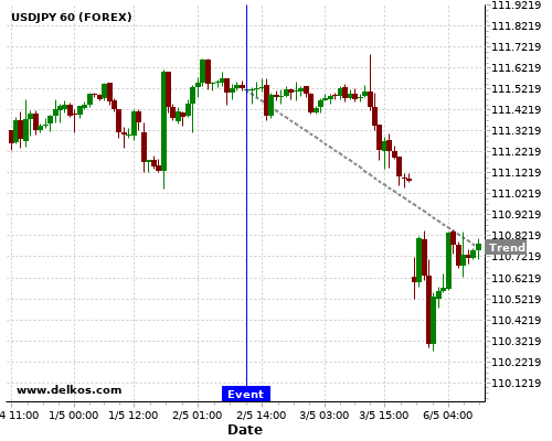 If the number is equal to than economists’ consensus there is a 83.33% probability that USDJPY will trend down following the news event.