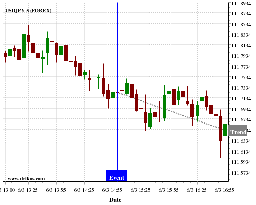 If the number is less than than economists’ consensus there is a 83.33% probability that USDJPY will trend down following the news event.