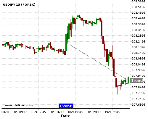 This probability is based on the last 12 US Fed Interest Rate Decision events, in which 10 of the last 12 events where the actual number was equal to than the economist consensus resulted in an down trend of USDJPY.