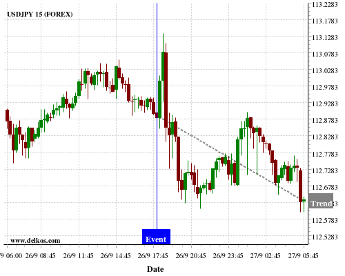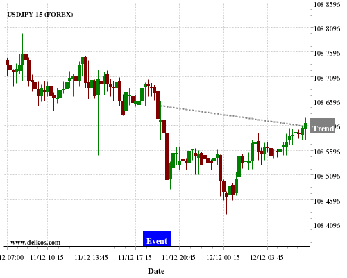 If the number is equal to than economists’ consensus there is a 83.33% probability that USDJPY will trend down following the news event.