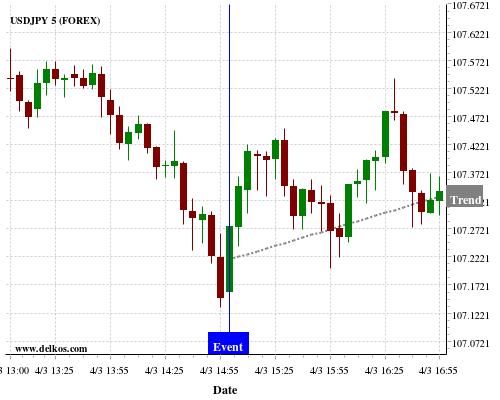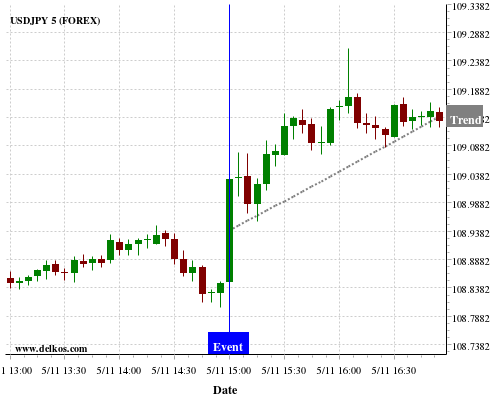 If the number is greater than than economists’ consensus there is a 83.33% probability that USDJPY will trend up following the news event.