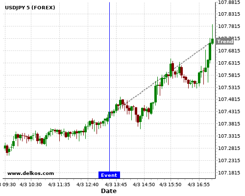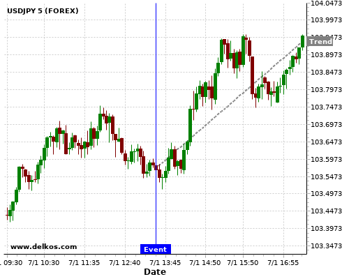 If the number is less than than economists’ consensus there is a 83.33% probability that USDJPY will trend up following the news event.