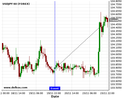 If the number is less than than economists’ consensus there is a 83.33% probability that USDJPY will trend up following the news event.