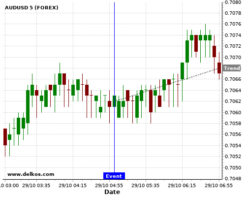 If the number is less than than economists’ consensus there is a 85.71% probability that AUDUSD will trend up following the news event.
