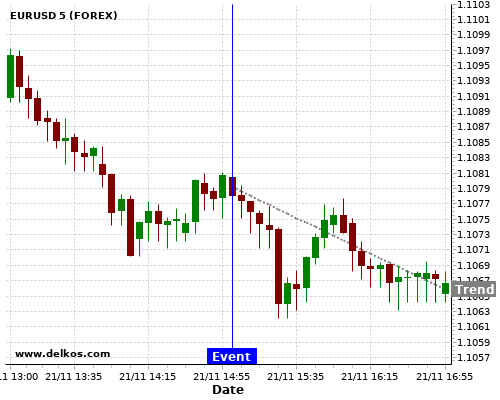 If the number is greater than than economists’ consensus there is a 85.71% probability that EURUSD will trend down following the news event.