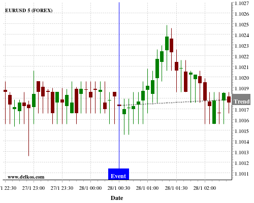 If the number is less than than economists’ consensus there is a 85.71% probability that EURUSD will trend up following the news event.