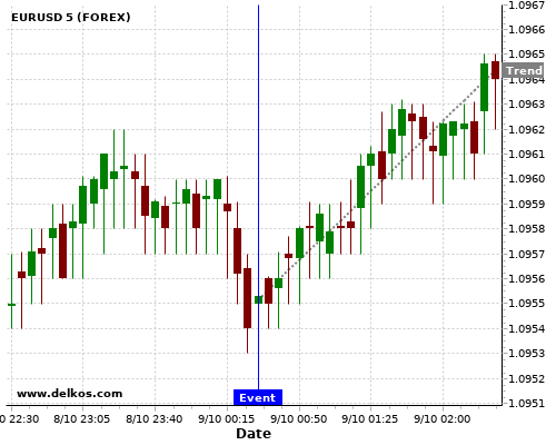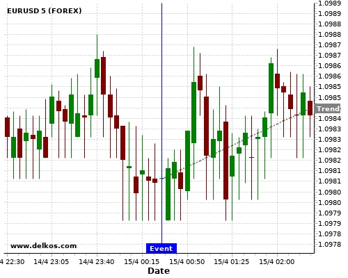 If the number is less than than economists’ consensus there is a 85.71% probability that EURUSD will trend up following the news event.
