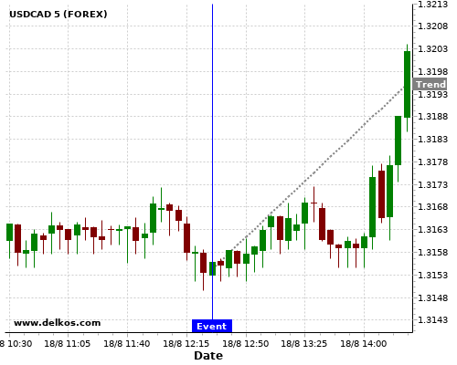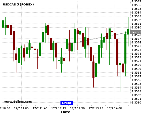 If the number is greater than than economists’ consensus there is a 85.71% probability that USDCAD will trend up following the news event.