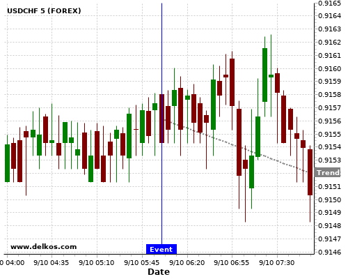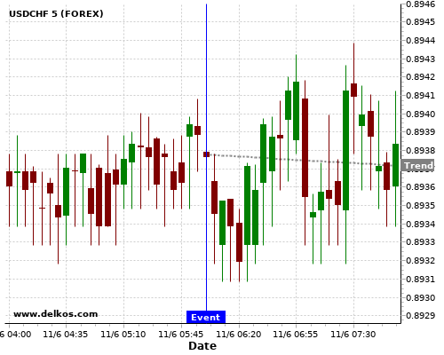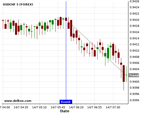 If the number is greater than than economists’ consensus there is a 85.71% probability that USDCHF will trend down following the news event.