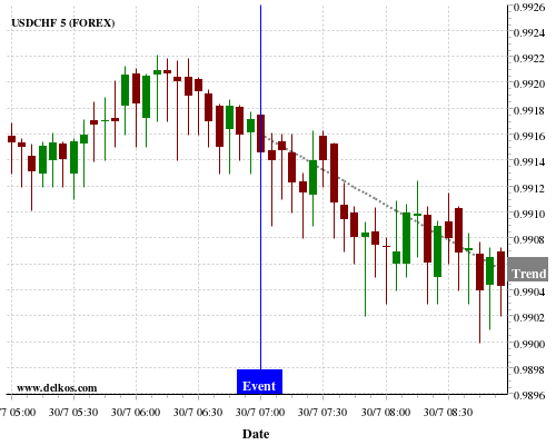If the number is greater than than economists’ consensus there is a 85.71% probability that USDCHF will trend down following the news event.