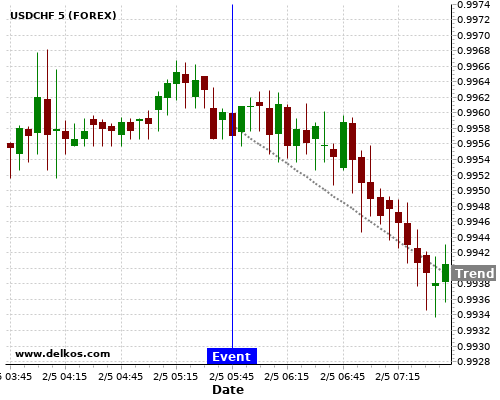 If the number is less than than economists’ consensus there is a 85.71% probability that USDCHF will trend down following the news event.