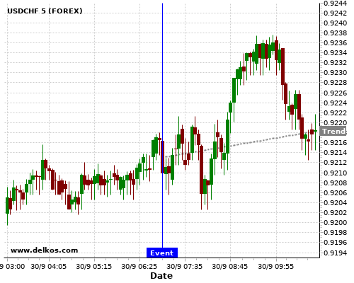 If the number is greater than than economists’ consensus there is a 85.71% probability that USDCHF will trend up following the news event.