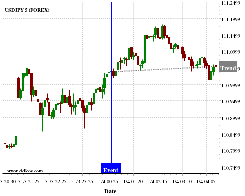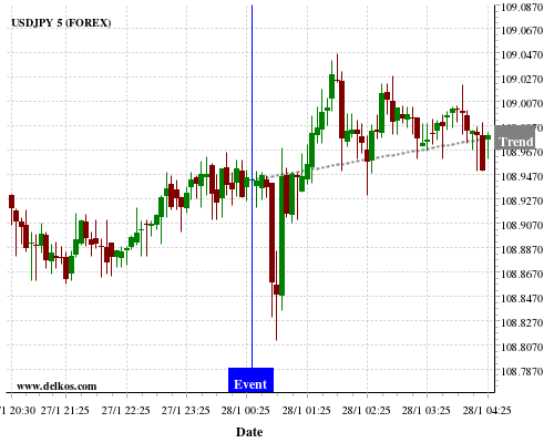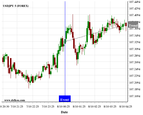 If the number is less than than economists’ consensus there is a 85.71% probability that USDJPY will trend up following the news event.