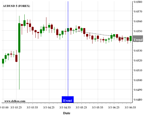 If the number is less than than economists’ consensus there is a 87.5% probability that AUDUSD will trend down following the news event.