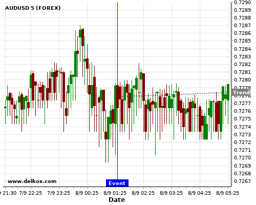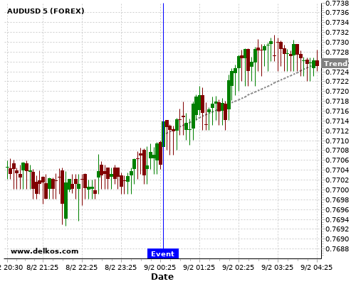 If the number is greater than than economists’ consensus there is a 87.5% probability that AUDUSD will trend up following the news event.