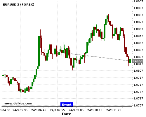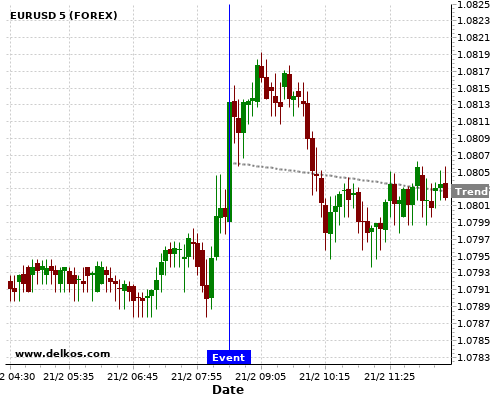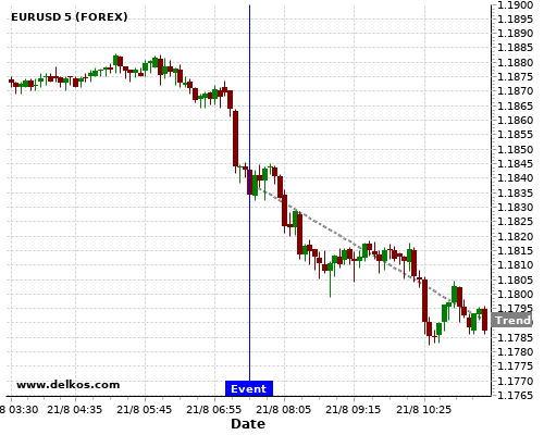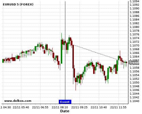 If the number is greater than than economists’ consensus there is a 87.5% probability that EURUSD will trend down following the news event.