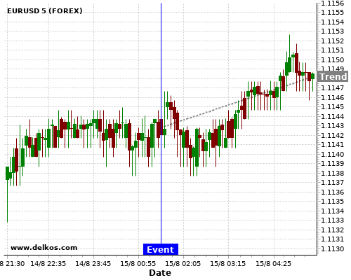 If the number is greater than than economists’ consensus there is a 87.5% probability that EURUSD will trend up following the news event.