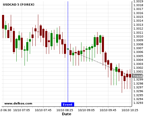 If the number is greater than than economists’ consensus there is a 87.5% probability that USDCAD will trend down following the news event.