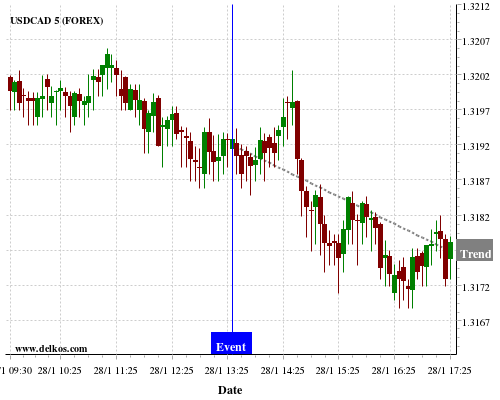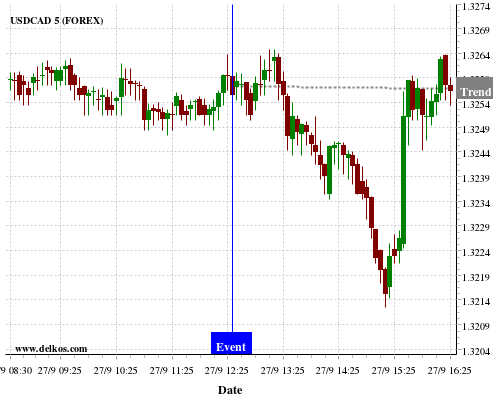 If the number is greater than than economists’ consensus there is a 87.5% probability that USDCAD will trend down following the news event.