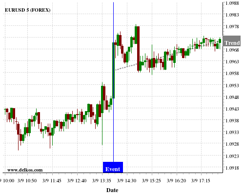If the number is less than than economists’ consensus there is a 88.88% probability that EURUSD will trend up following the news event.