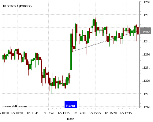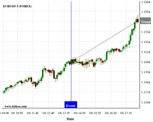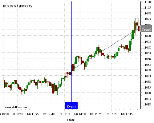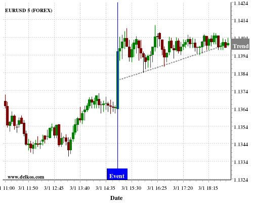If the number is less than than economists’ consensus there is a 88.88% probability that EURUSD will trend up following the news event.