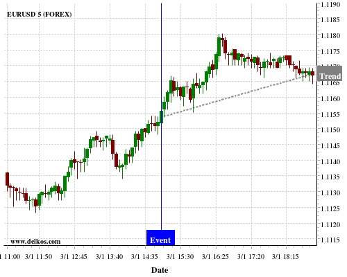 If the number is less than than economists’ consensus there is a 88.88% probability that EURUSD will trend up following the news event.