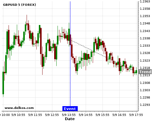 If the number is greater than than economists’ consensus there is a 88.88% probability that GBPUSD will trend down following the news event.