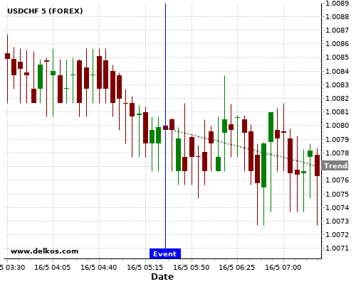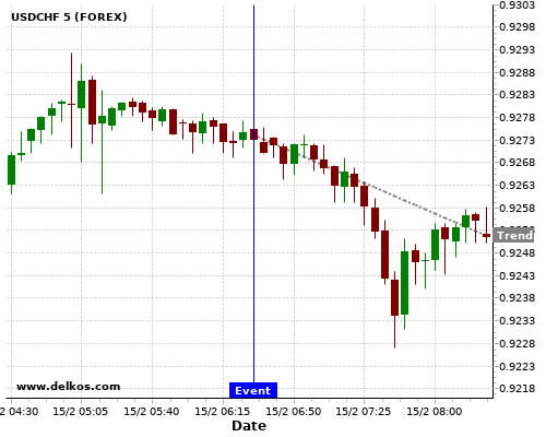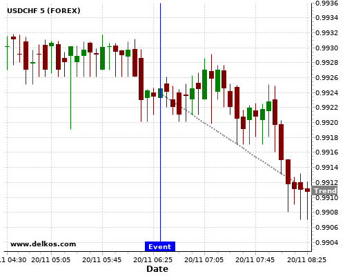 If the number is less than than economists’ consensus there is a 88.88% probability that USDCHF will trend down following the news event.