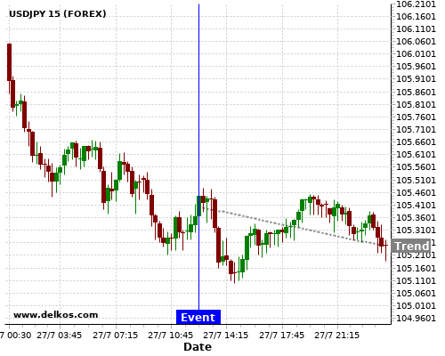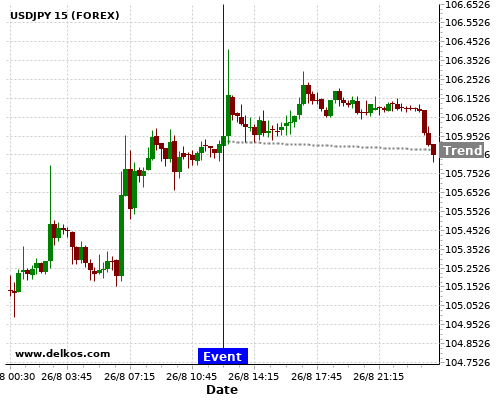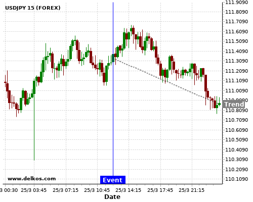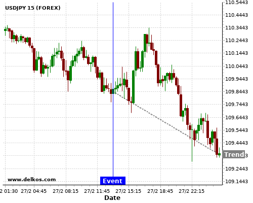 If the number is greater than than economists’ consensus there is a 88.88% probability that USDJPY will trend down following the news event.